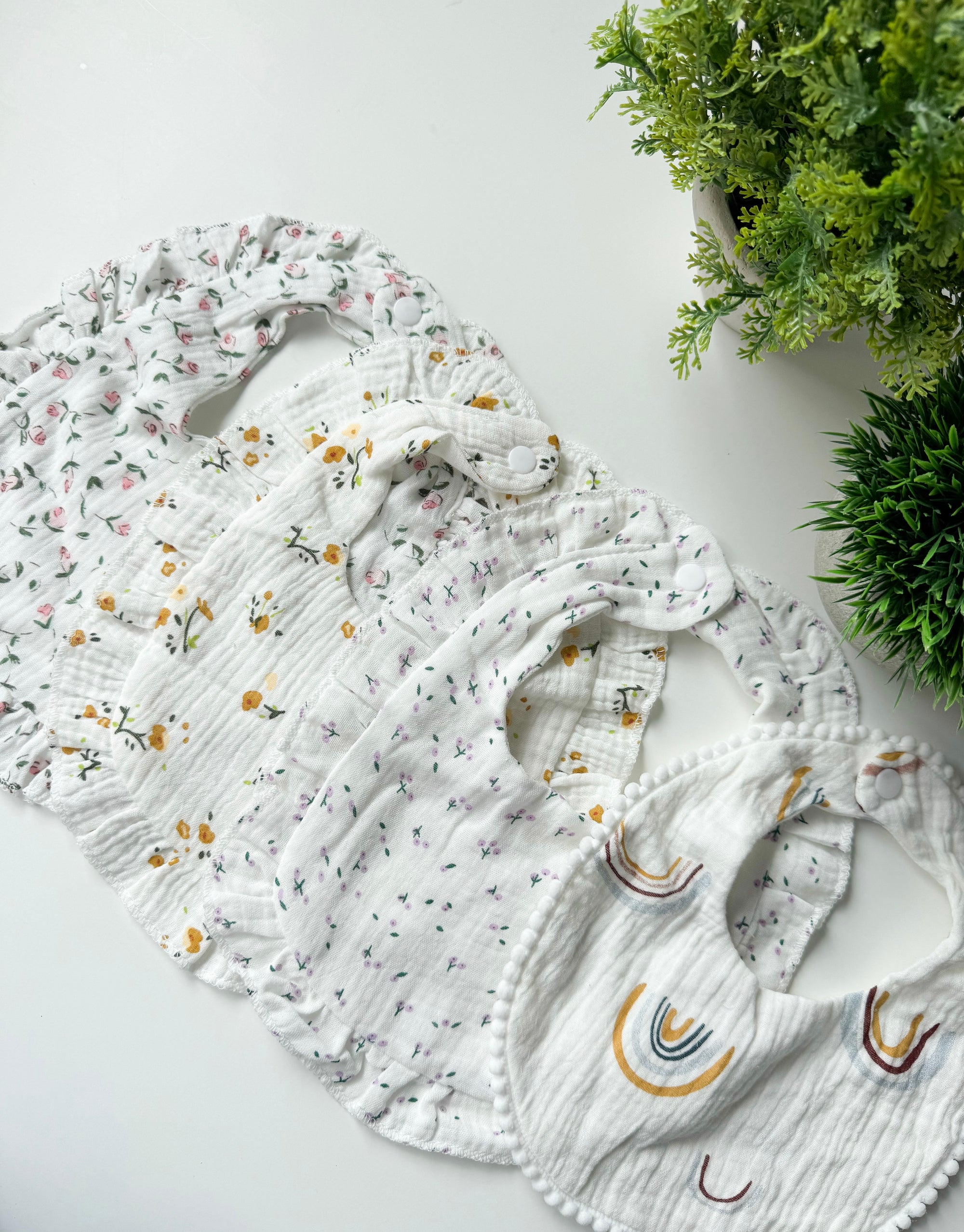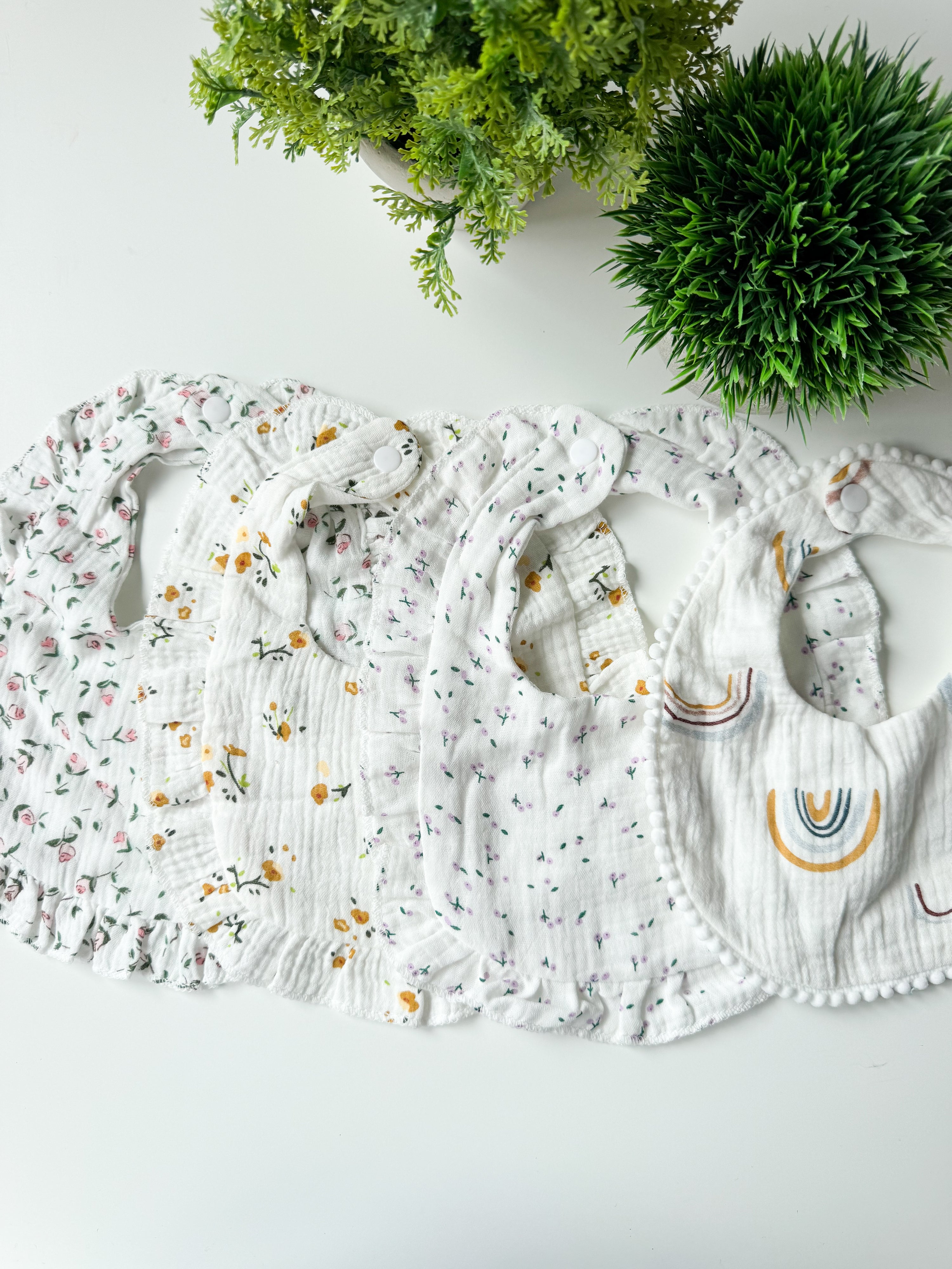 Confeccionados em algodão orgânico macio e respirável, garantem uma absorção eficaz enquanto respeitam a pele sensível do bebé. Os padrões suaves e delicados acrescentam leveza e ternura, tornando cada peça não apenas funcional, mas também irresistivelmente bonita.