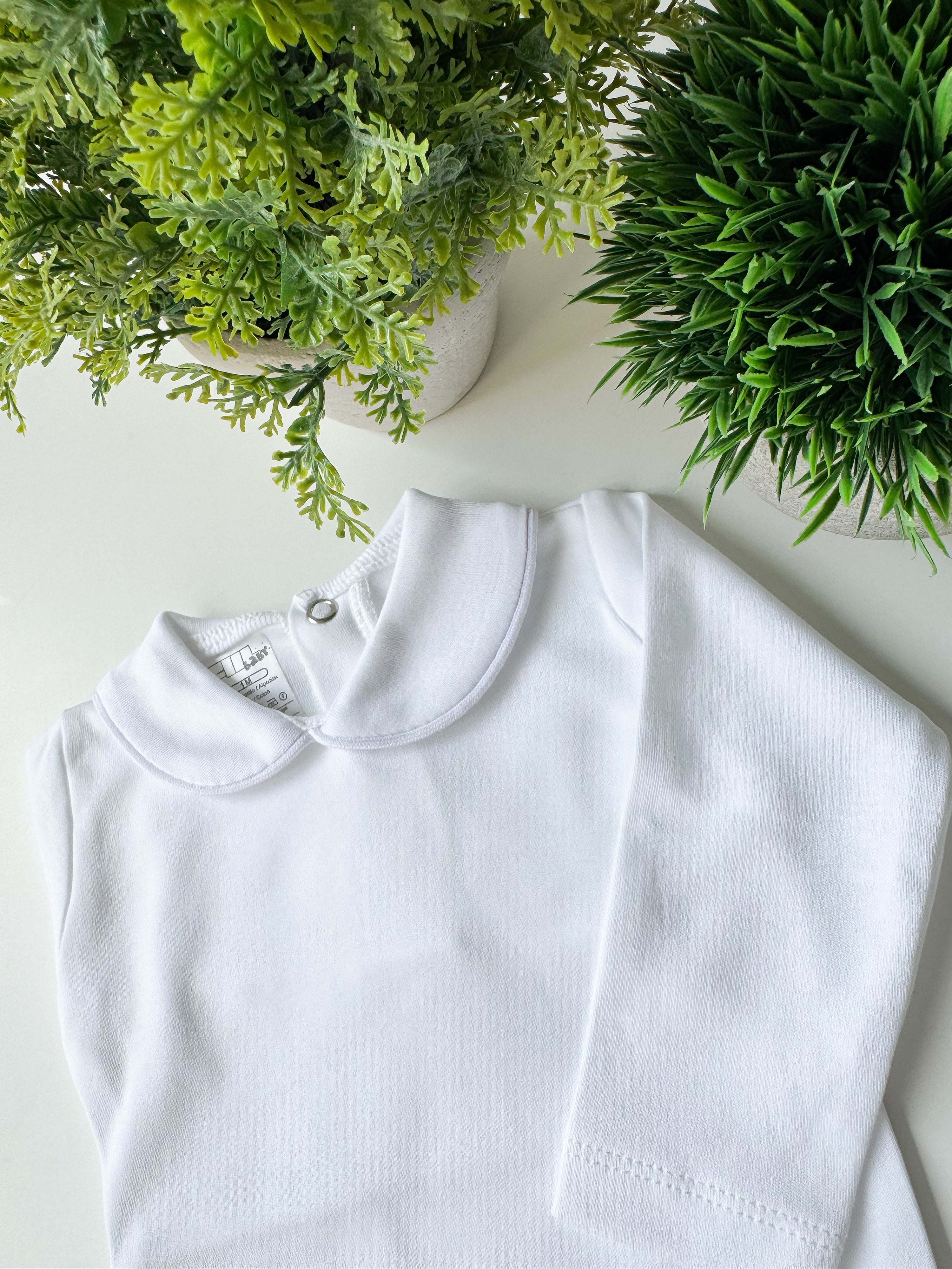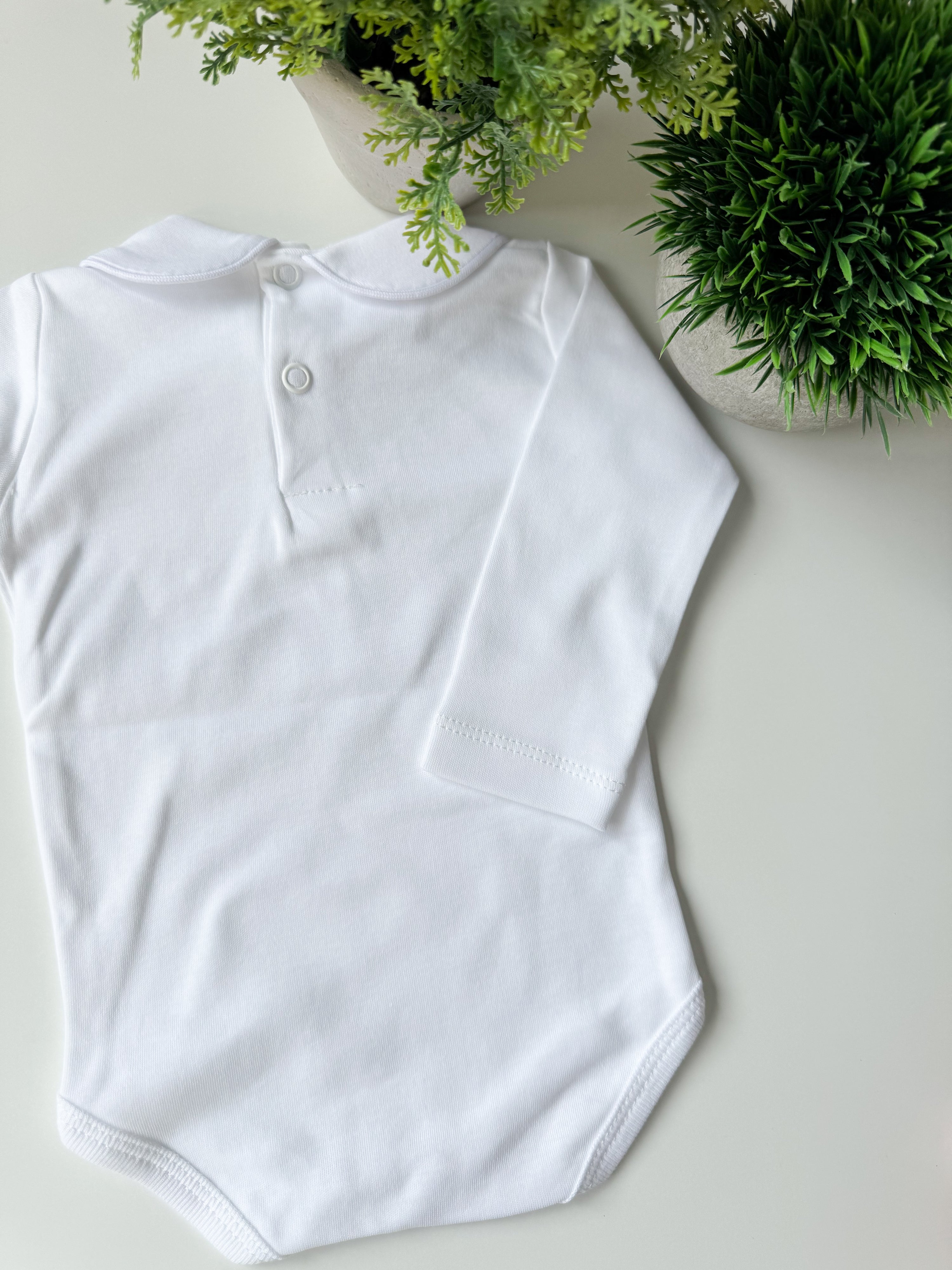 Clássico, delicado e intemporal. O Body de Gola Branca é uma peça essencial no guarda-roupa do recém-nascido, pensado para combinar elegância e conforto em perfeita harmonia.