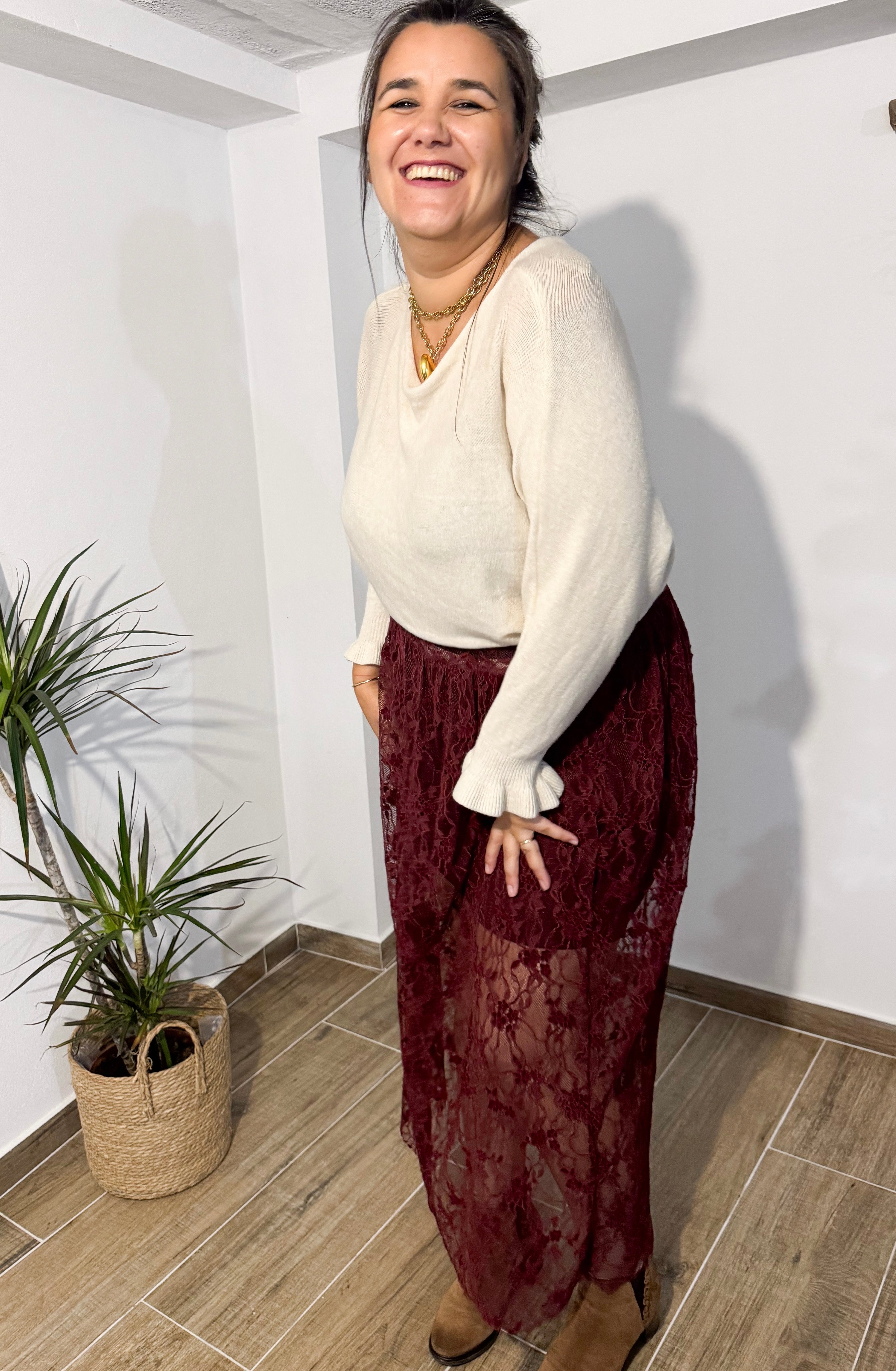 Perfeita para combinar com saias, jeans ou peças mais estruturadas, é aquela camisola essencial que se adapta a qualquer estação e acrescenta sempre um ar elegante ao coordenado.