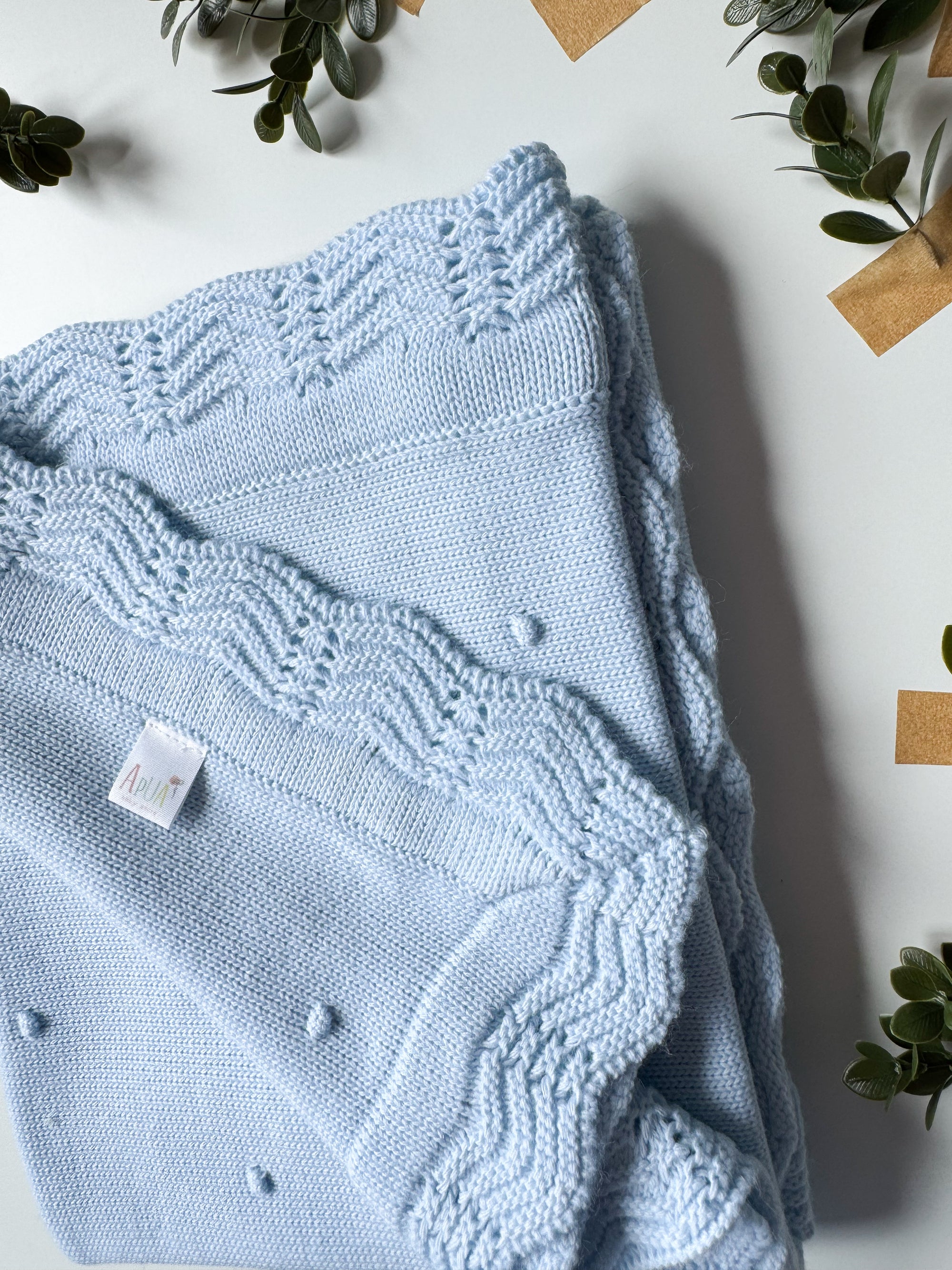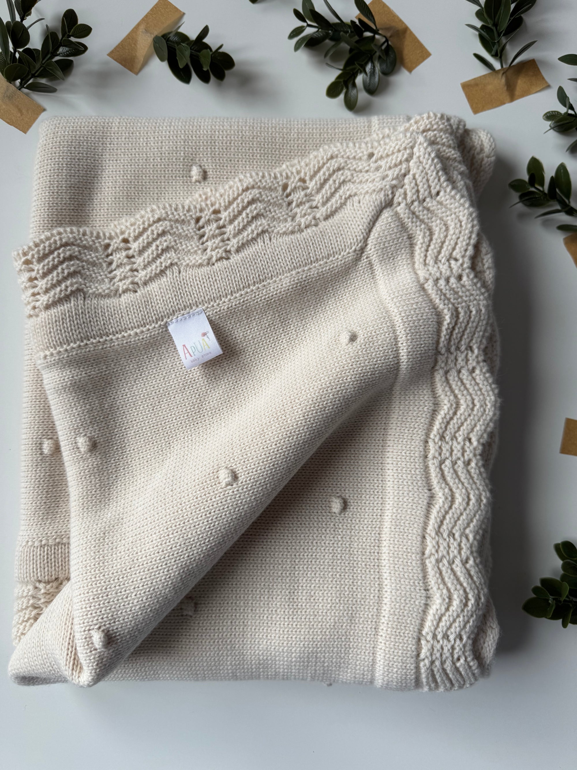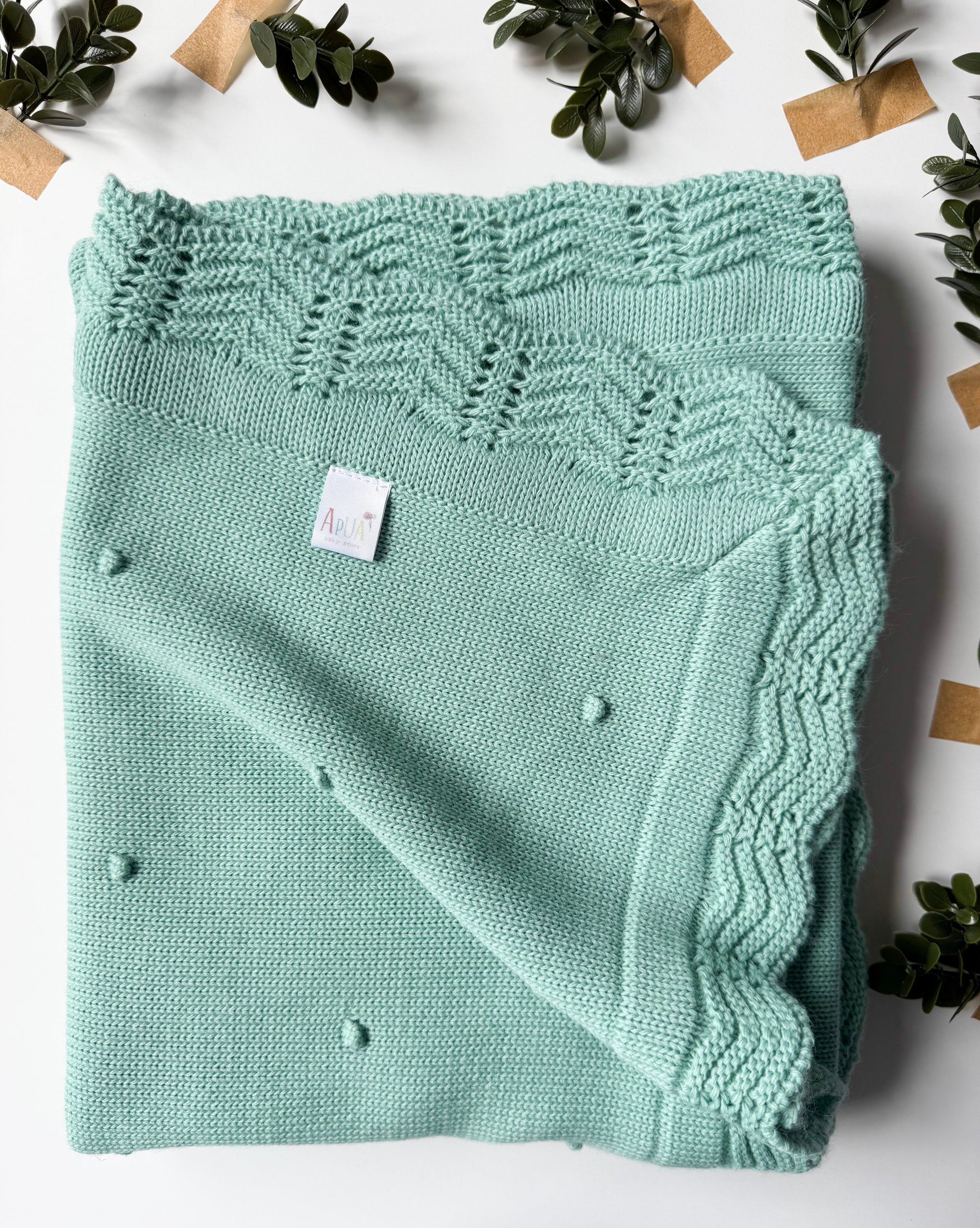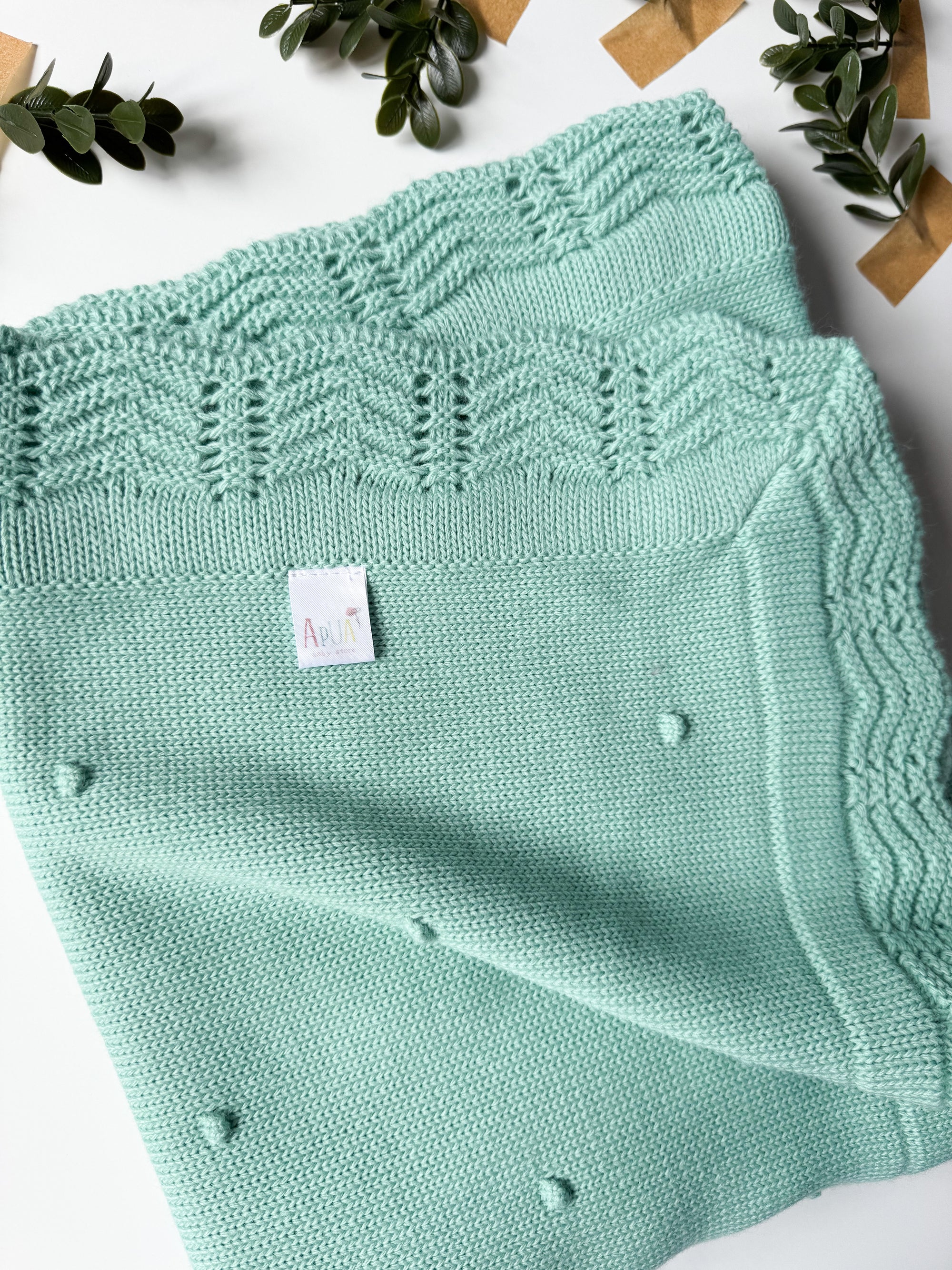Delicada e aconchegante, a manta Apua foi pensada para envolver o recém-nascido em suavidade e conforto desde os primeiros dias. Produzida nacionalmente, destaca-se pelos detalhes em ponto canelado com relevo e pequenas aplicações em pipocas, que lhe conferem um charme especial.